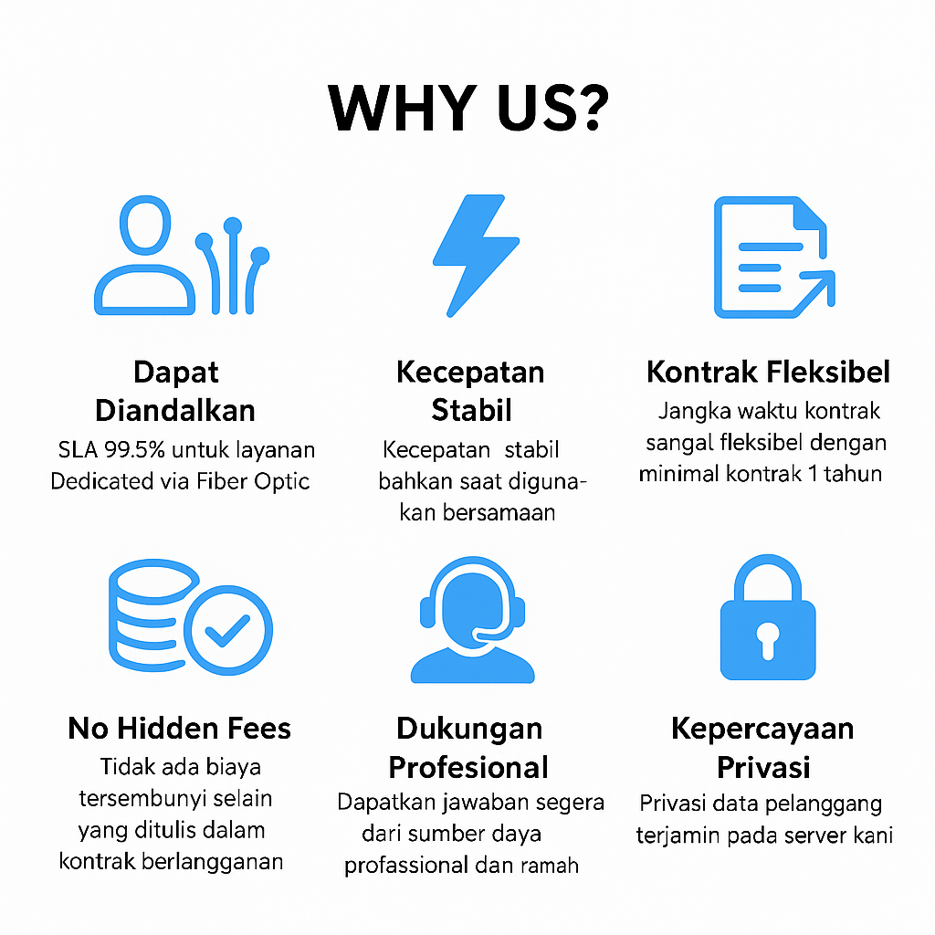 Layanan internet untuk bisnis kecil atau rumahan, dengan koneksi stabil dan fitur keamanan, cocok untuk aktivitas kerja seperti email dan video konferensi.